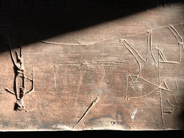 Kiinnostavia merkintöjä myllynkivien reunalaudoissa.