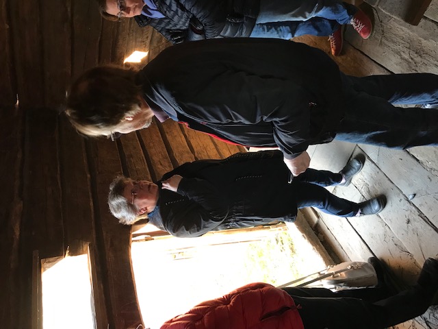 Toinen retkikohteemme oli Wiksbergin kartanon vanha talousrakennus, jota Wiksbergin kartanon viljelypalstat ry on kunnostanut vuodesta 2017. Kotiseutuyhdistys on yhdistyksen jäsen, ja seuraa tiiviisti kunnostustöiden edistymistä.