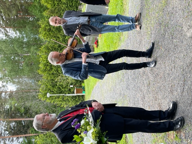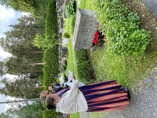 Suomen Kotiseutuliitto kunnioitti liiton 75-vuotisen historian kunniaksi perustajaansa Esko Aaltosta käynnillä hänen haudallaan Forssan hautausmaalla Eskon päivänä 12.6.24 klo 14.